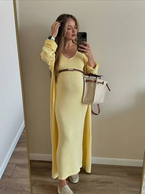 Beaumama robe longue gilets en maille grossesse élégant costume deux pièces crochet tricot femme enceinte