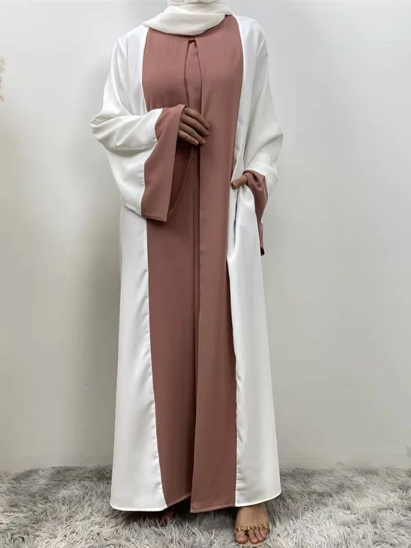 Laissez-vous séduire par cette abaya dubai kimono rose poudré et blanc, une création qui conjugue à merveille modernité et subtilité. Son association de couleurs délicates et sa coupe fluide en font un indispensable pour celles qui recherchent élégance et simplicité dans une seule tenue.