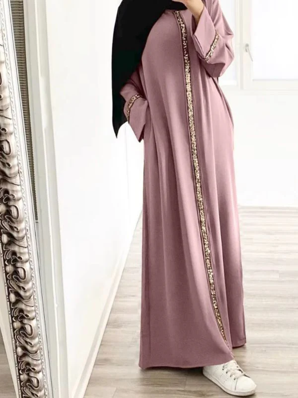 À mi-chemin entre tradition et modernité, cette abaya au coloris rose figue vous offre une allure à la fois posée et affirmée. Elle casse les codes avec subtilité : une touche féminine, un tombé fluide et un liseré doré discret qui structure la silhouette. Une tenue pensée pour les femmes qui veulent affirmer leur présence sereine, tout en conservant un confort absolu dans leur quotidien.