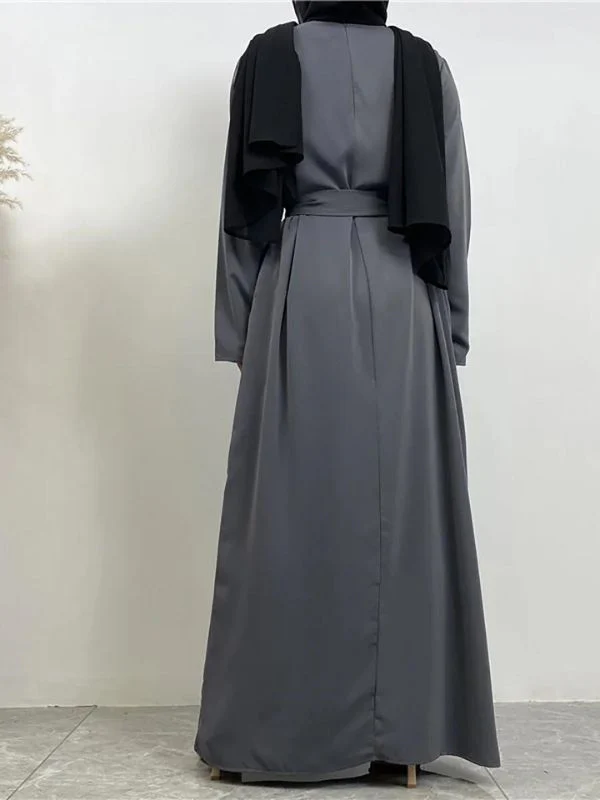 La couleur grise apporte une profondeur et une richesse qui se marient facilement avec une variété d’accessoires et de hijabs, rendant cette pièce essentielle dans toute garde-robe.