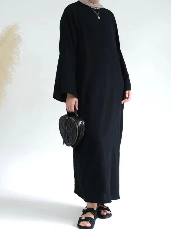 Abaya pour femme en coton « Noir » – Simplicité et élégance pour un look intemporel