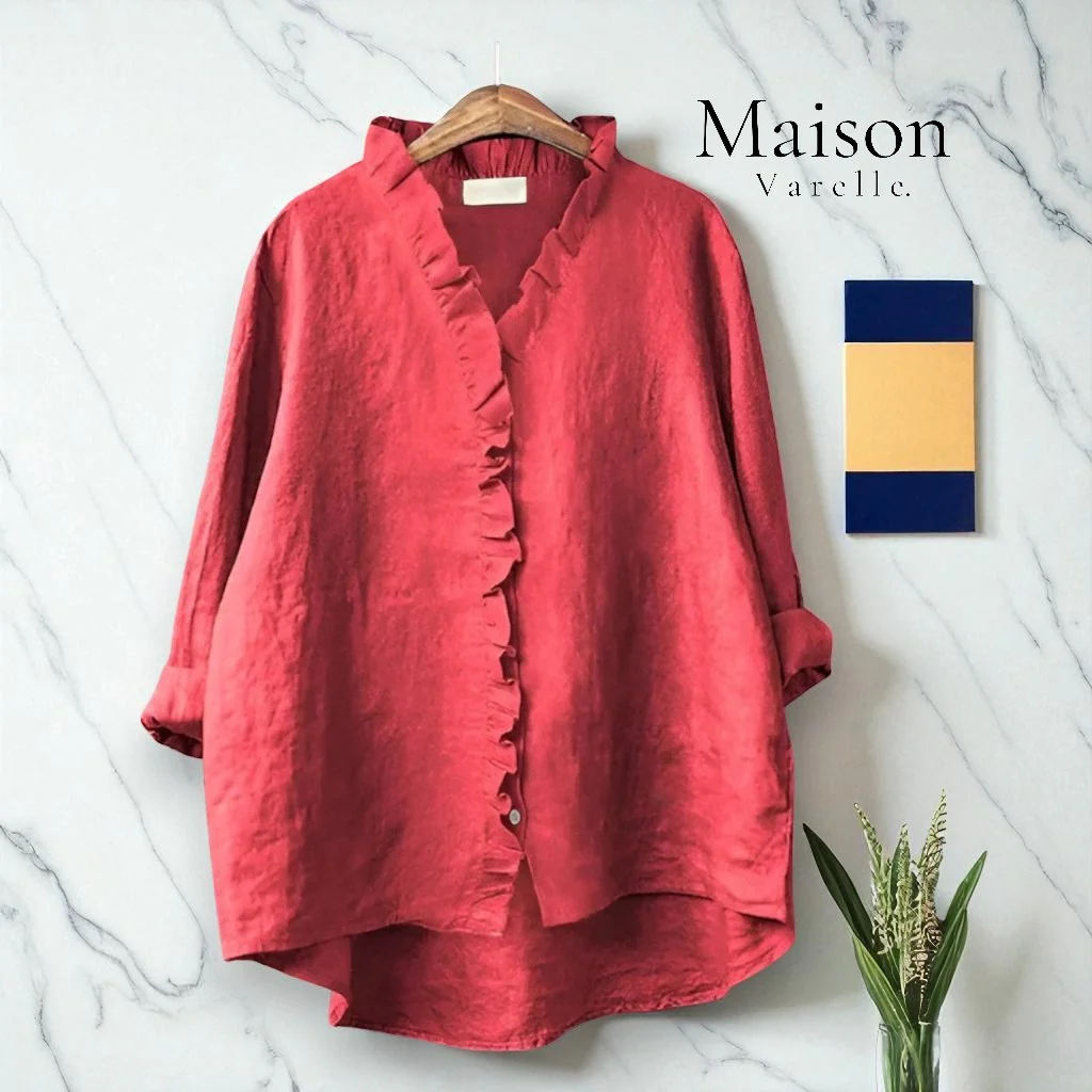 Volants délicats, coupe flatteuse et élégance discrète pour un look à la fois classique et moderne.