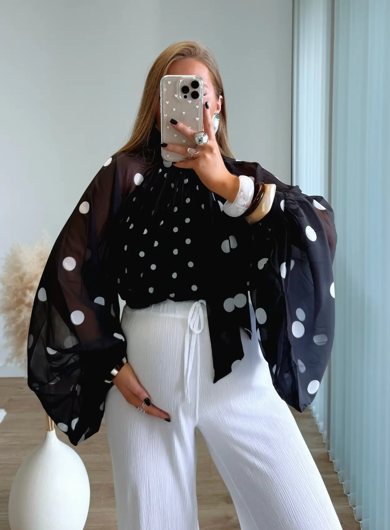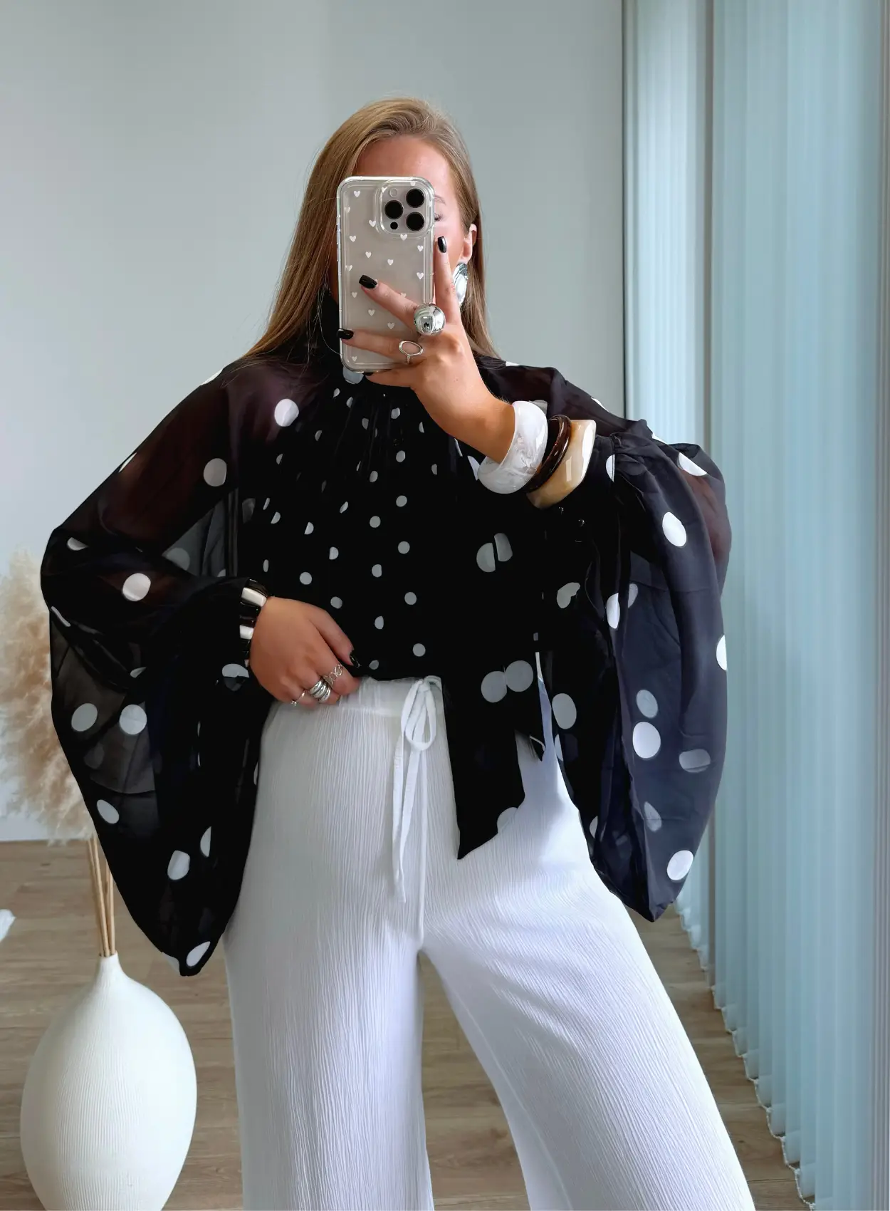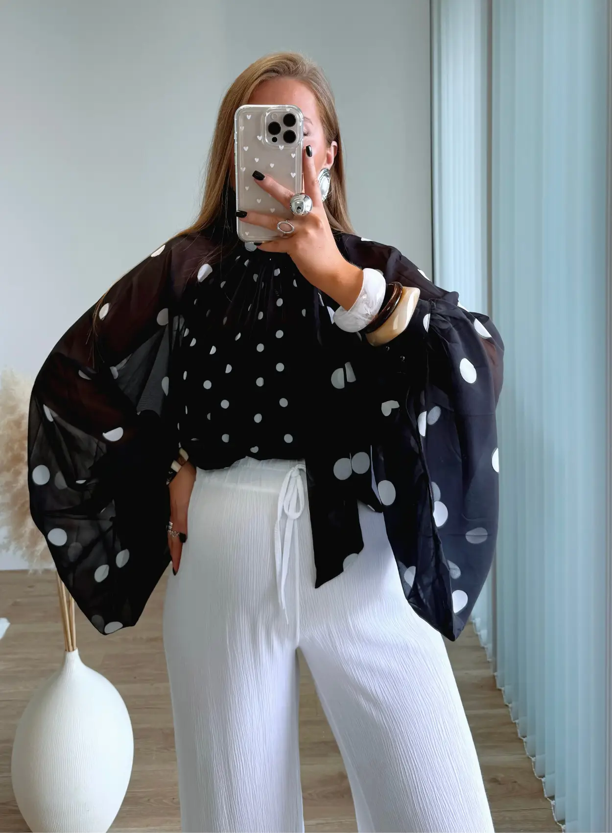 Blouse de grossesse noire fluide à pois blancs 🖤