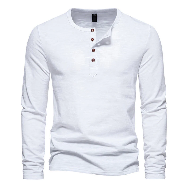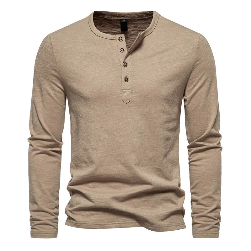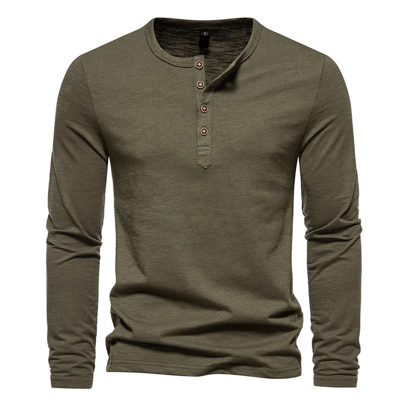 Modèle : T-shirt à manches longues, col Henley 4 boutons