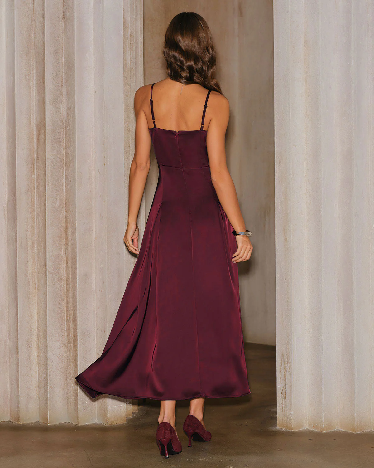 Un éclat profond, une fluidité qui suit chacun de vos pas. Cette robe maxi en satin bordeaux allonge la silhouette et enveloppe la peau d’une douceur élégante, parfaite du dîner aux grandes occasions.