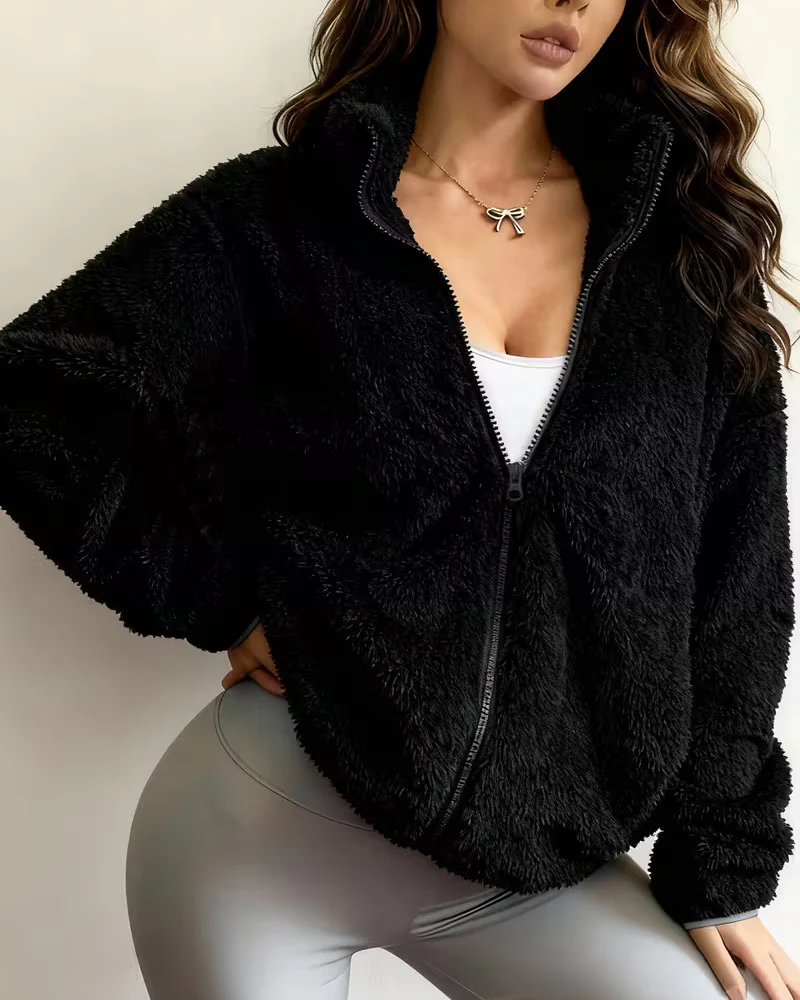 - Veste structurée avec un extérieur lisse et légèrement matelassé.