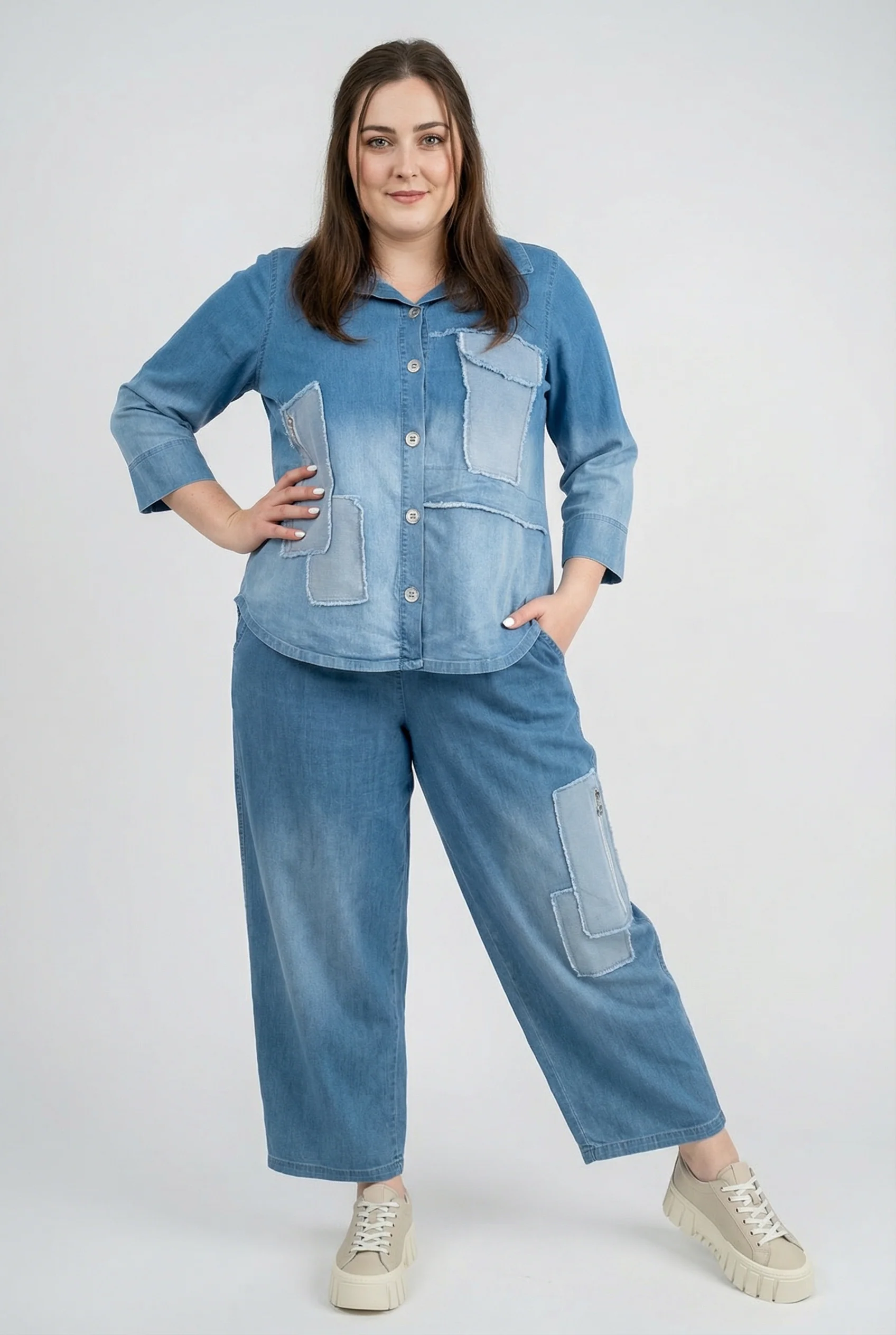 Blouse ‘Sky’ – Denim de qualité, Patch & Extensible