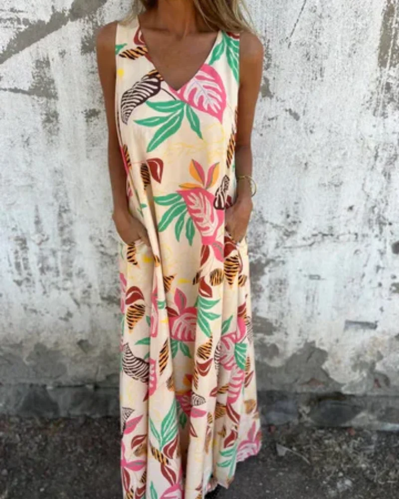 Attirez tous les regards avec cette robe florale radieuse qui tombe aussi gracieusement que vous. Que vous exploriez les rues de la ville ou dégustiez des cocktails au bord de la mer, ce look vibrant allie confort et charme.