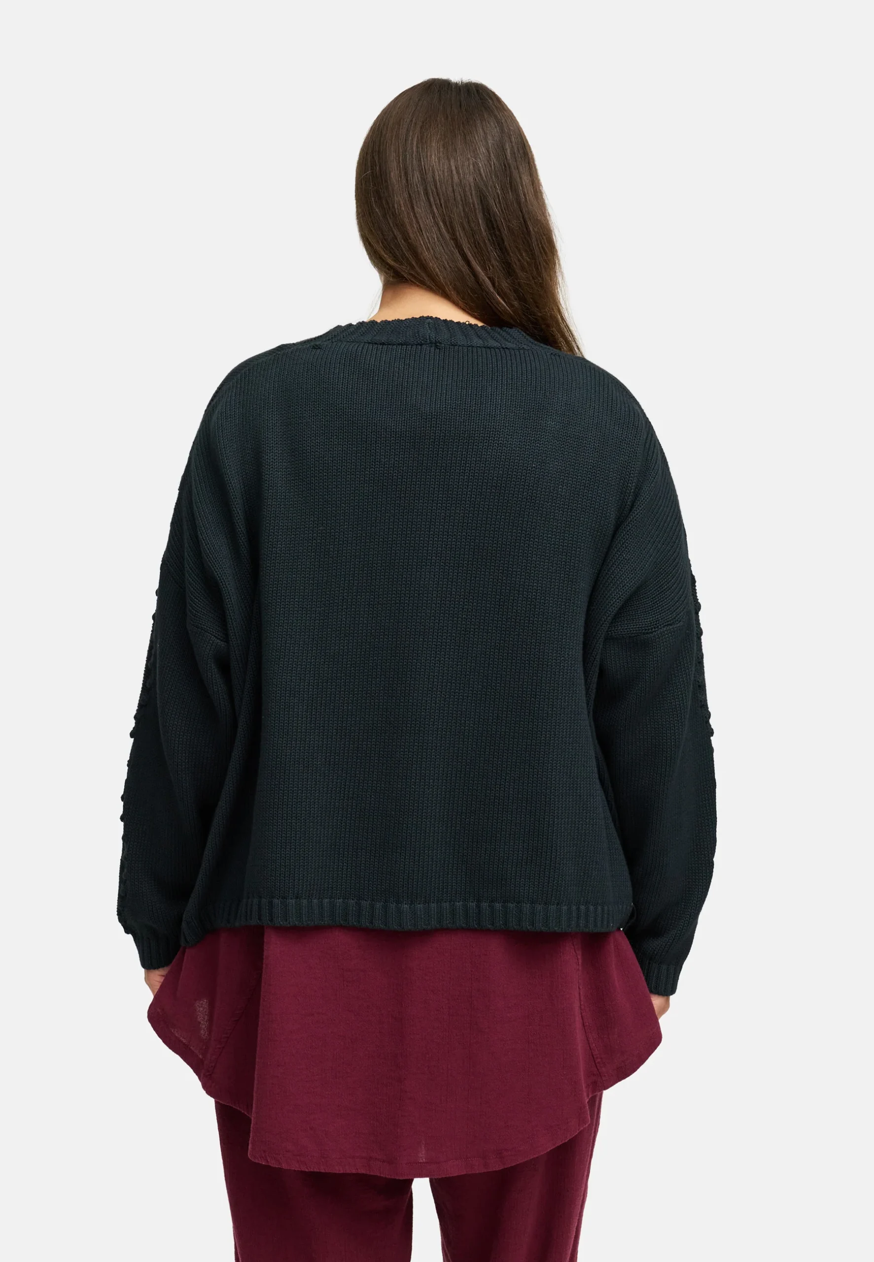 • Détails : Tricot avec éléments structurés, col en V, patte de boutonnage, larges poignets.