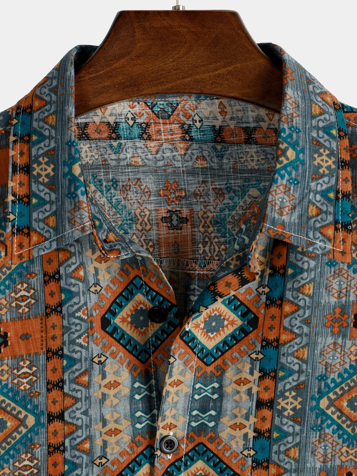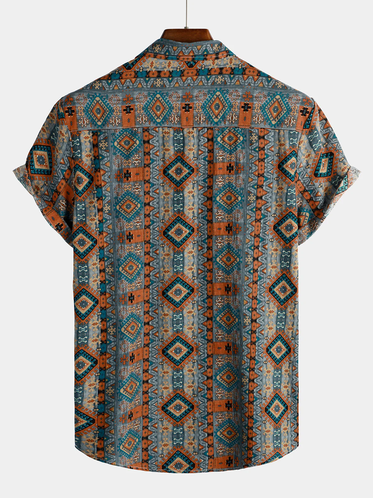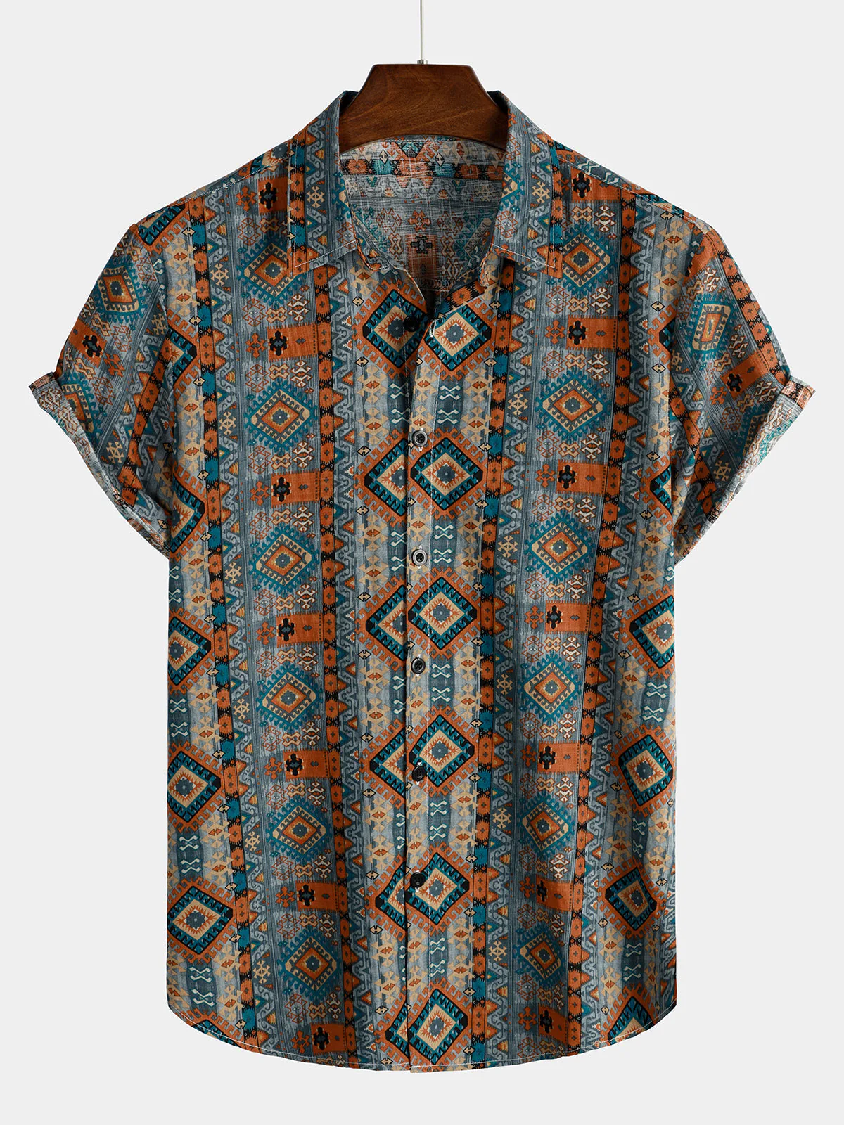 Chemise à manches courtes vintage rétro décontractée pour hommes