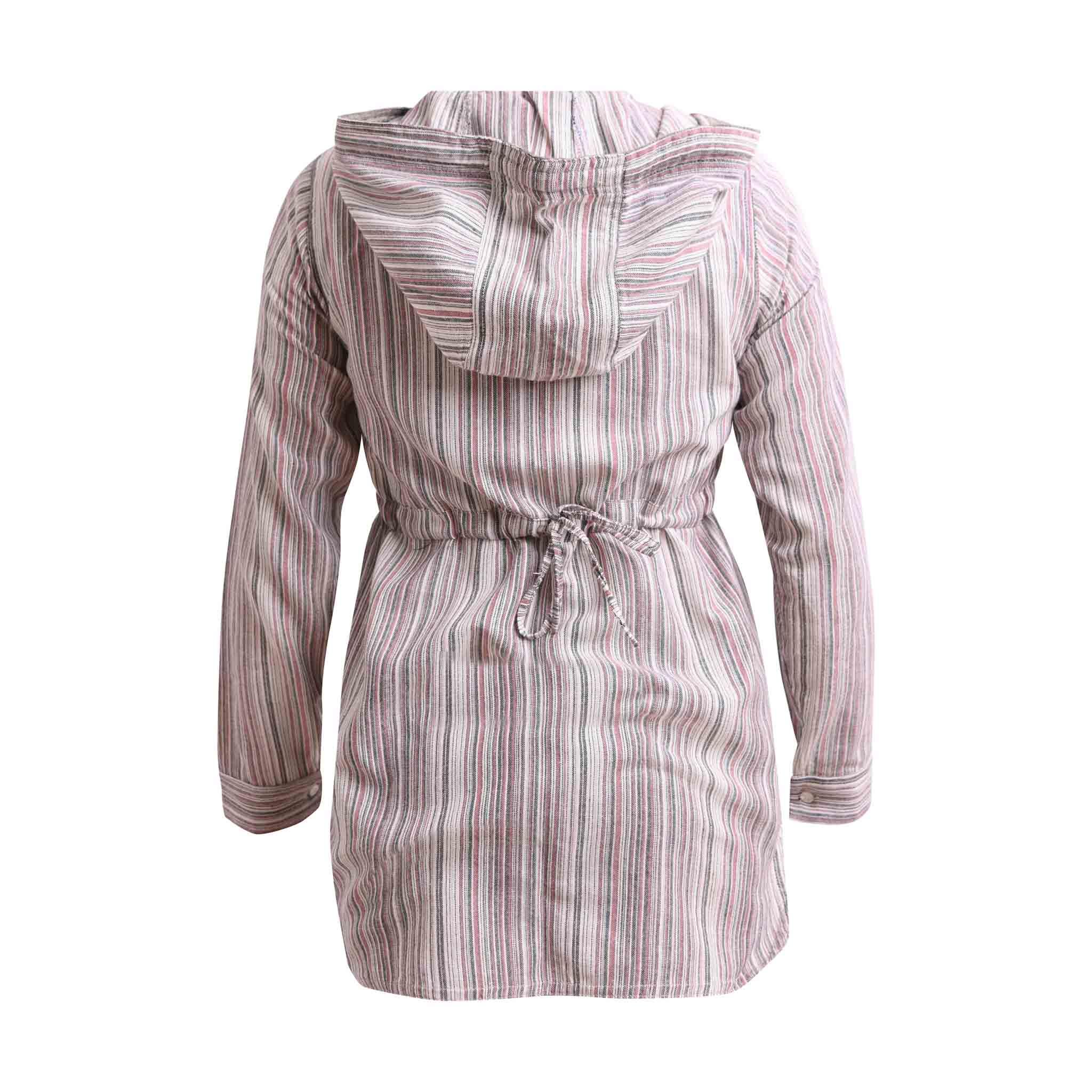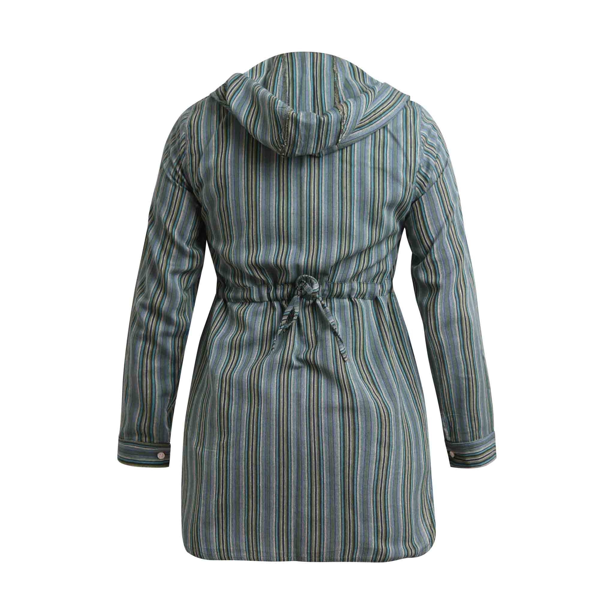 Cette gamme de chemises boho pour femmes est fabriquée en coton. Nous avons sélectionné un tissu léger et confortable 100% coton avec des rayures colorées pour créer cette collection de mode éthique Hippieness. Les chemises hippies sont dotées d'une capuche à cordon. Ces chemises hippies pour femmes sont disponibles en taille S, M, L, et en brun, vert et gris. Ces chemises à manches longues et à capuche sont comfortable à porter ont été conçues pour les aventuriers qui aiment voyager, explorer la nature et profiter d'une journée de détente à la plage. Les chemises et shorts Hippie de notre collection Hippieness peuvent être combinés entre eux.