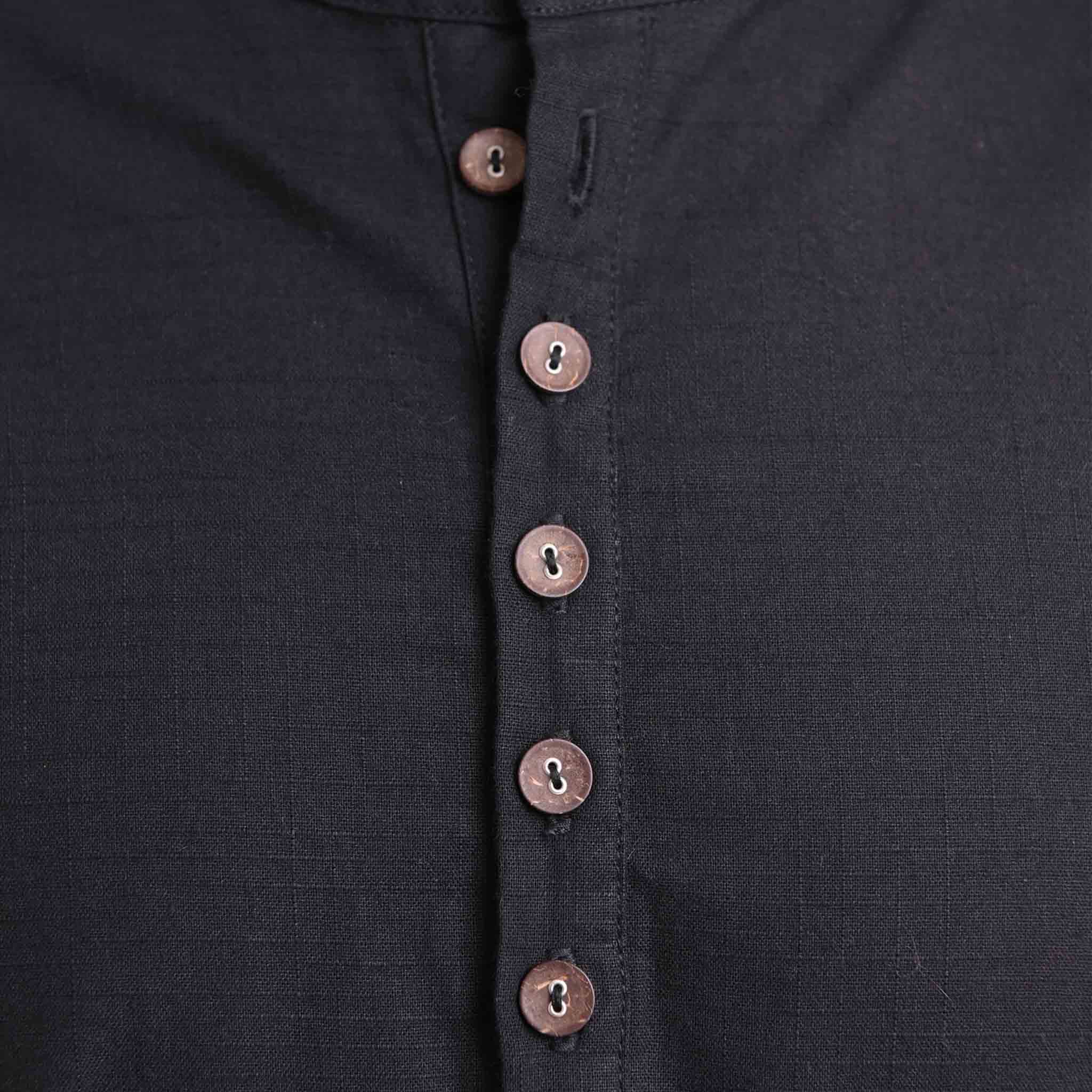 Nos chemises d'été pour hommes côté soleil sont fabriquées en 100% coton. Les chemises pour hommes de style boho ont une coupe décontractée, un col mandarin, des manches 3/4 et une patte de boutonnage remarquable. Cette chemise pour hommes est disponible en S, M, L, XL, XXL en noir. Obtiens ta chemise hippie virblatt sans col et chemise de pêcheur homme dès aujourd'hui.