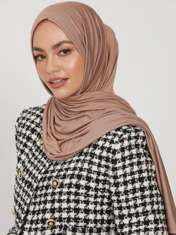 Le choix de la teinte taupe est réfléchi pour offrir une neutralité sophistiquée. Ce hijab peut être porté avec des tenues aux tons plus prononcés ou avec des nuances claires pour un effet harmonieux.