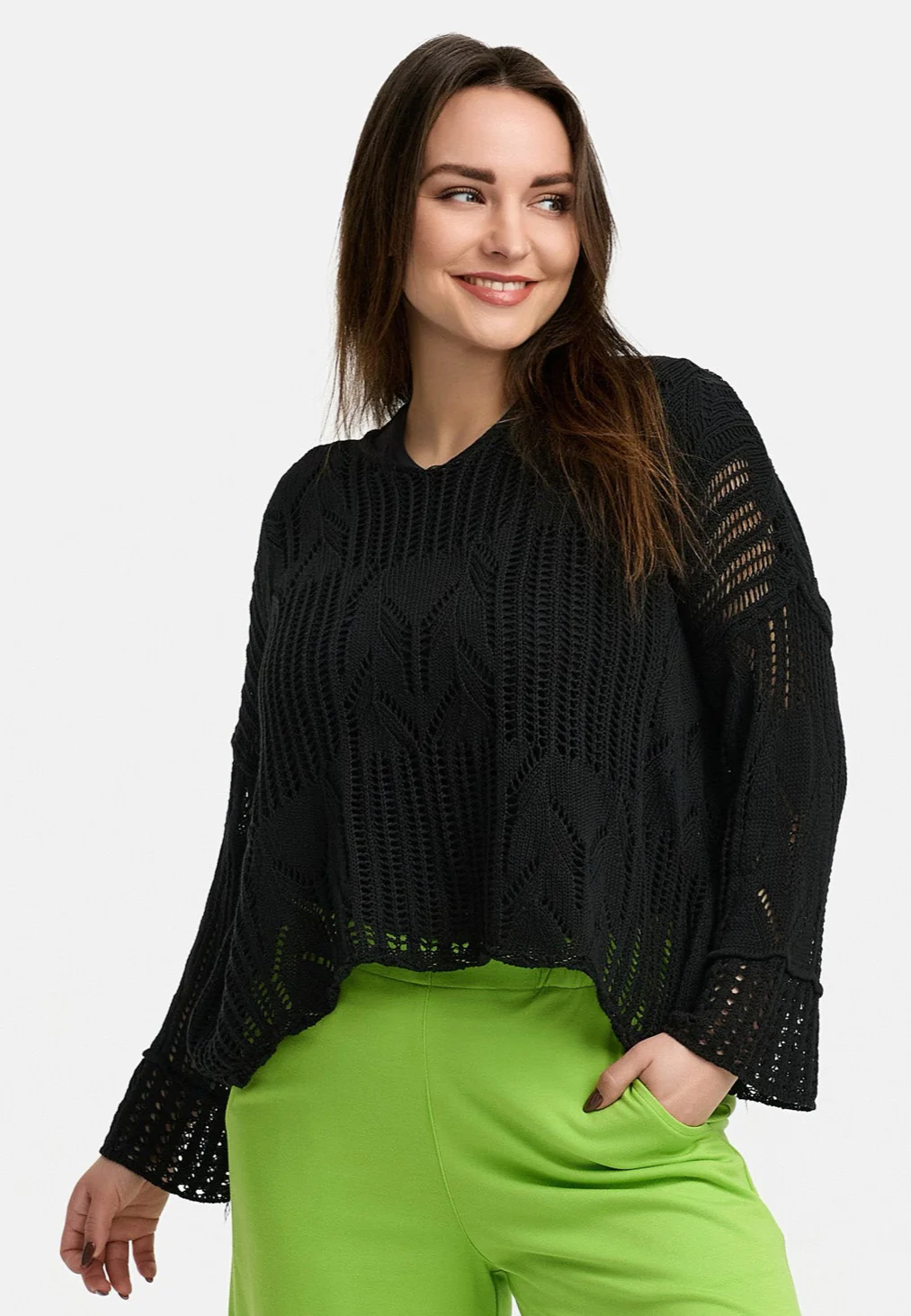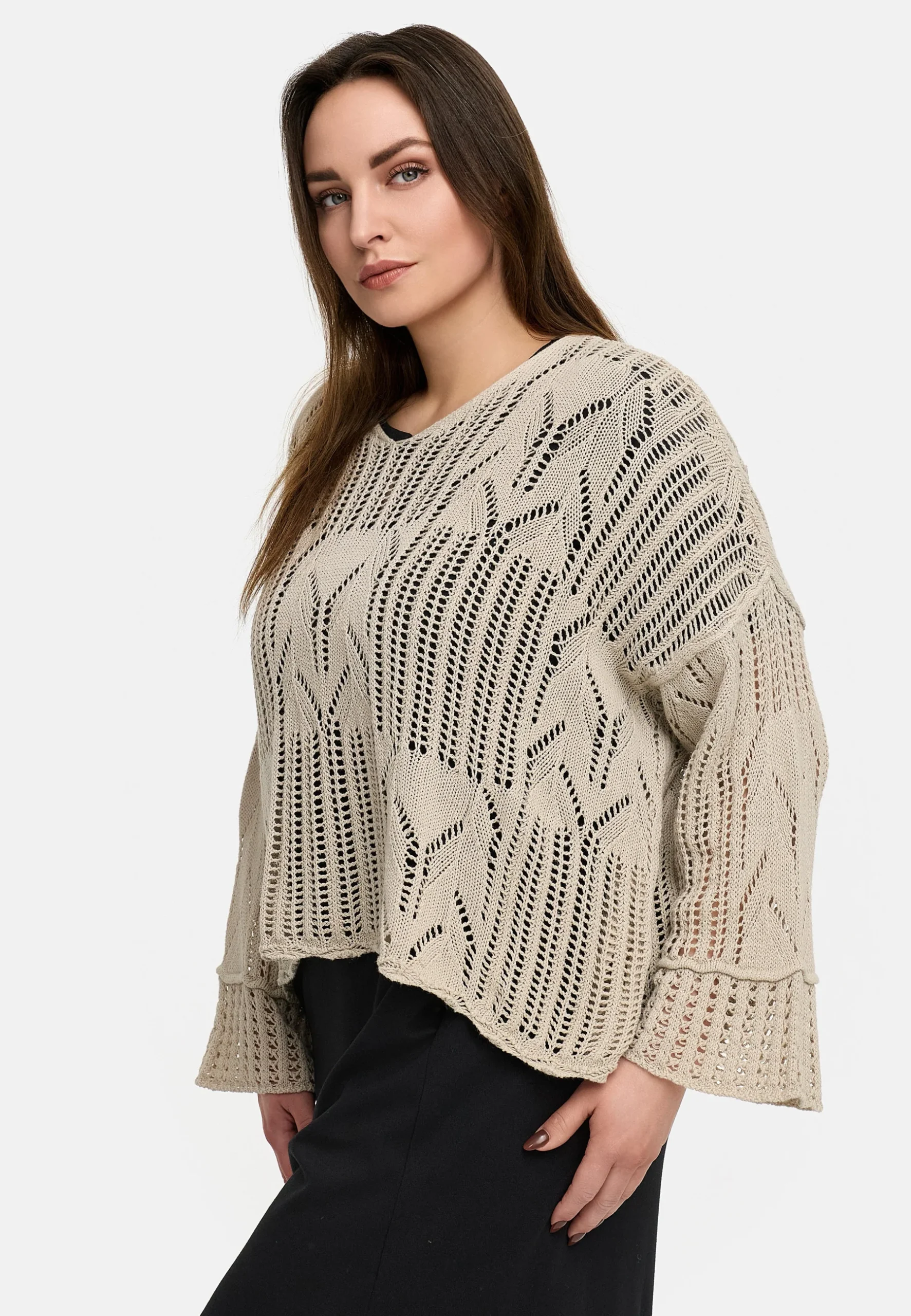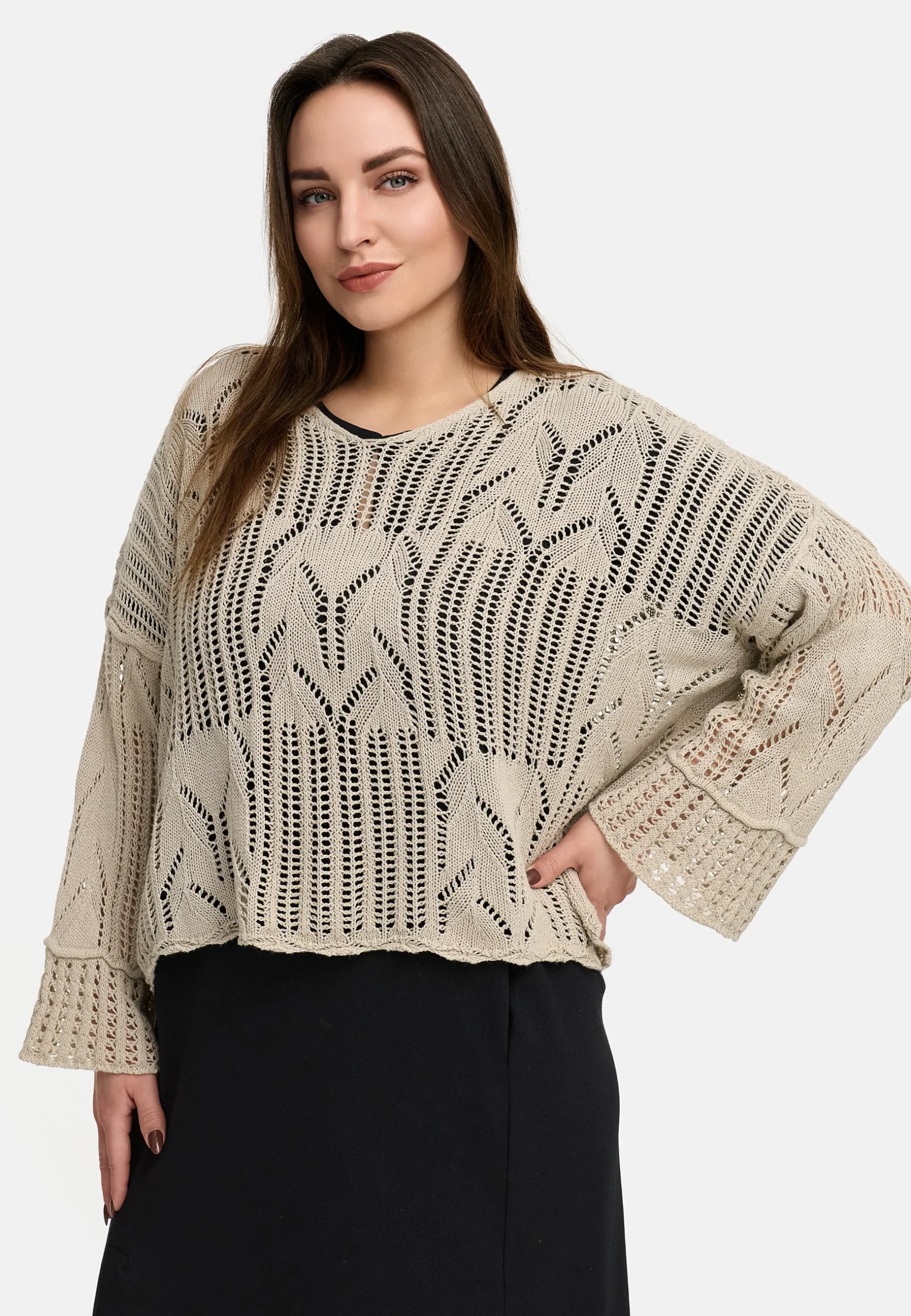 • Manches larges et longues avec un motif de tricot texturé pour une touche particulière