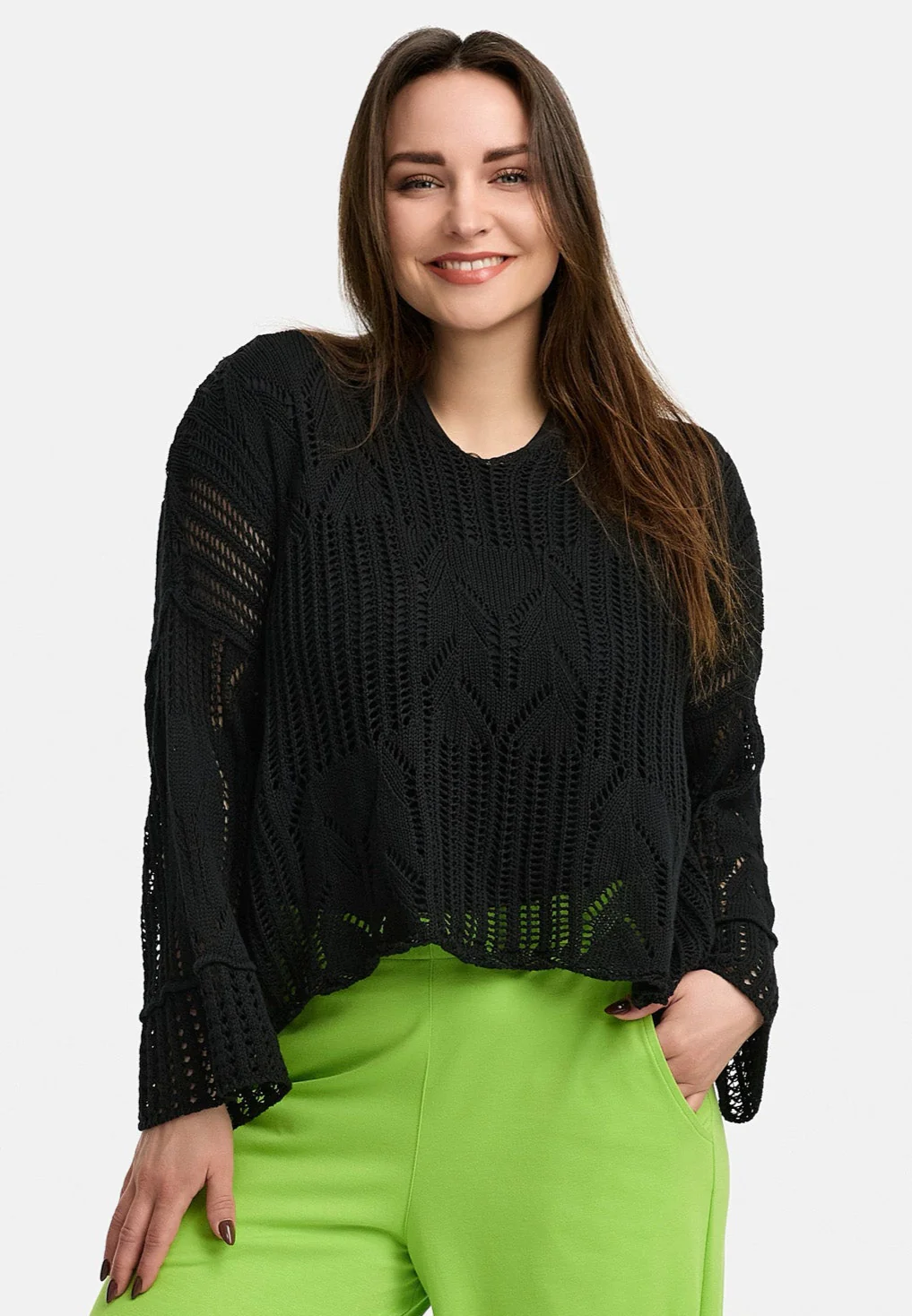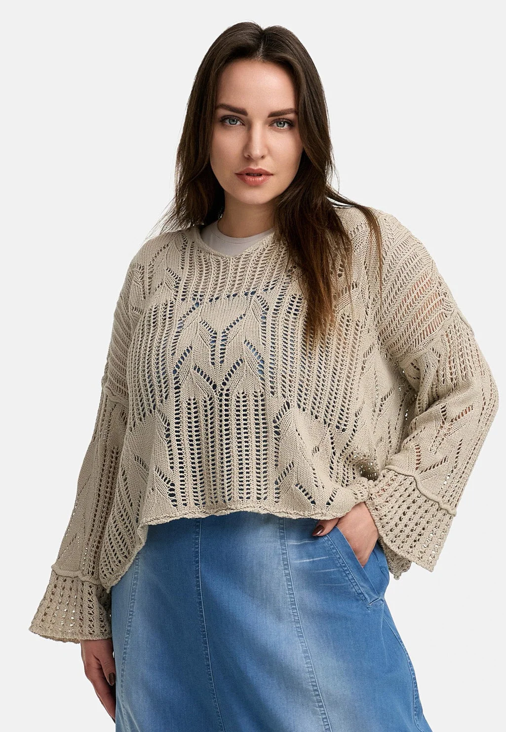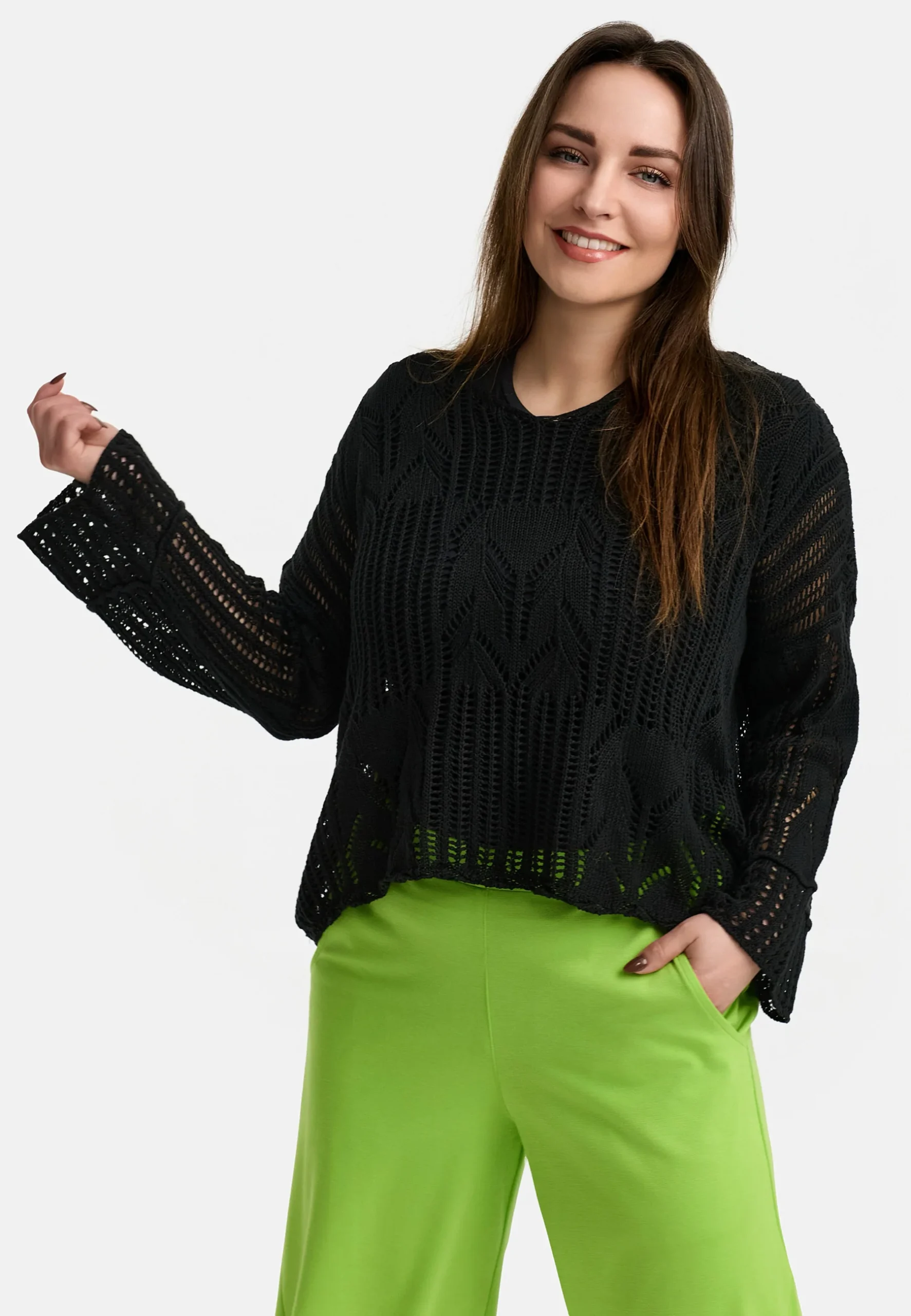 • Manches larges et longues avec un motif de tricot texturé pour une touche particulière