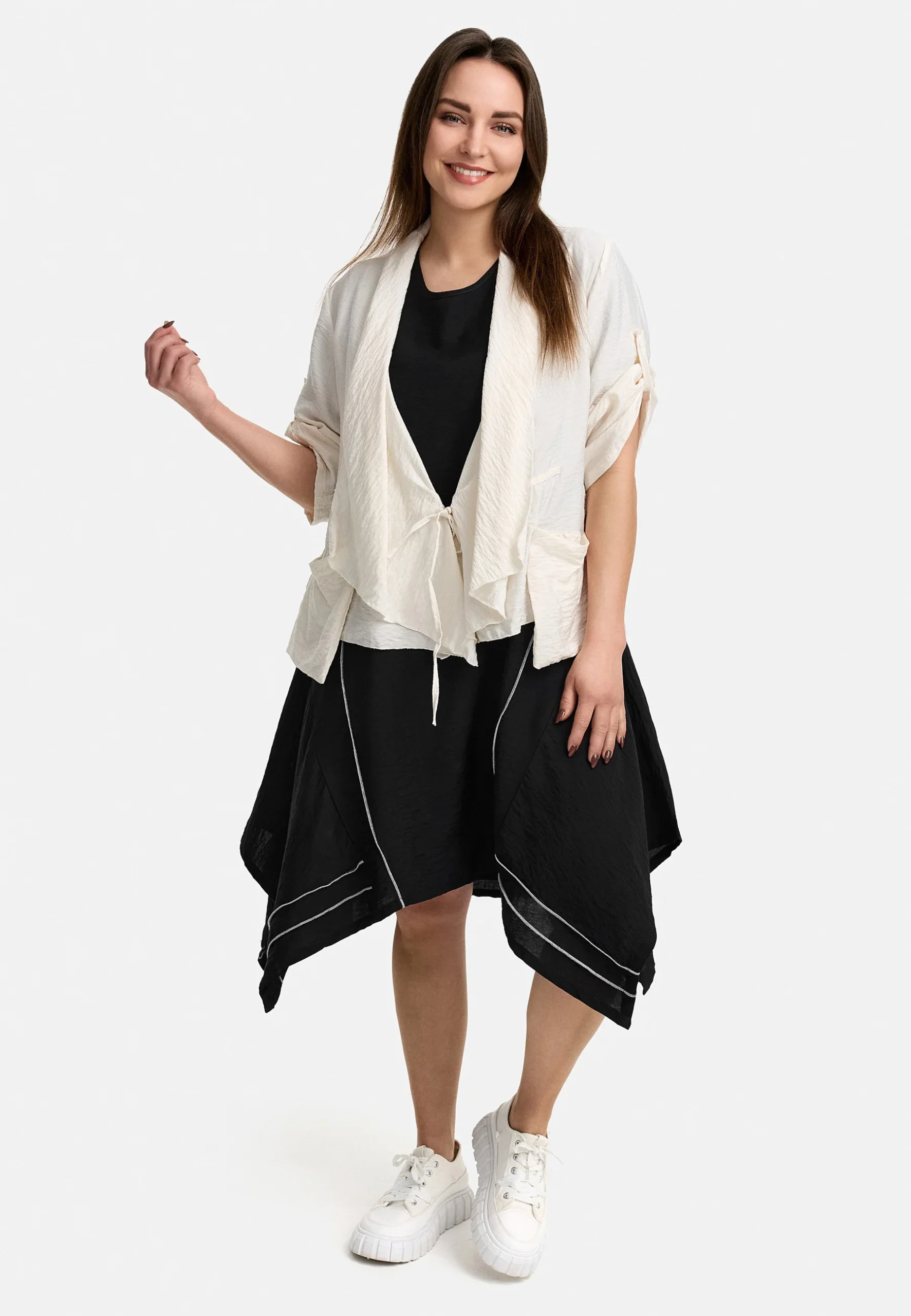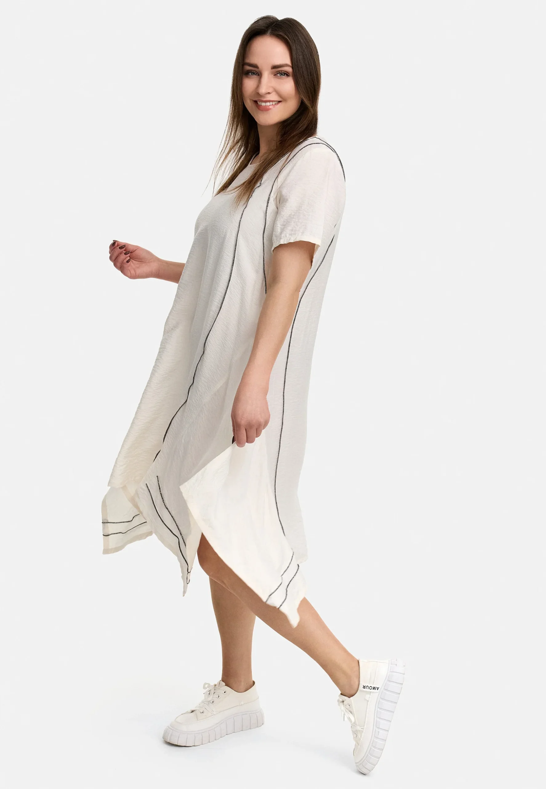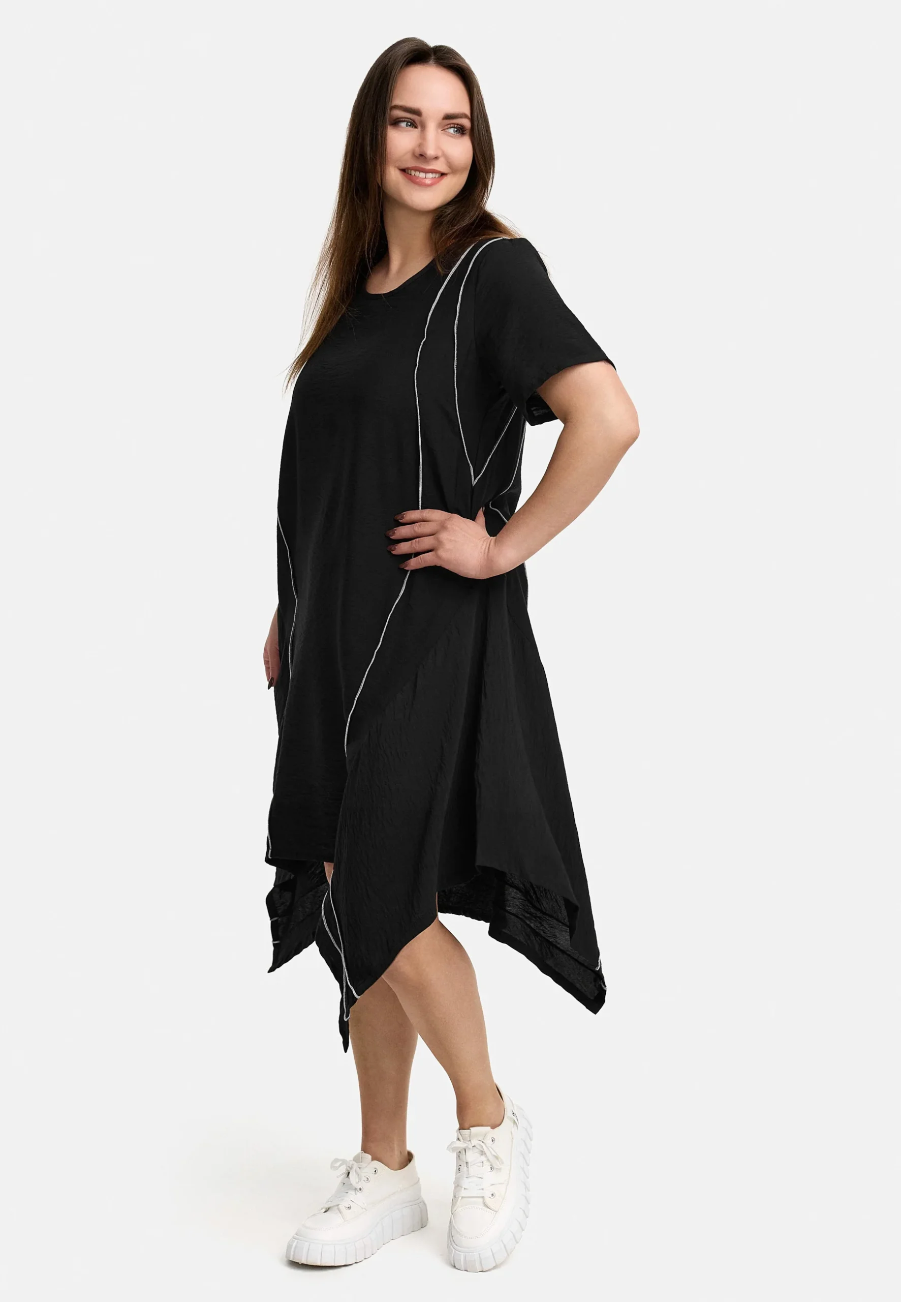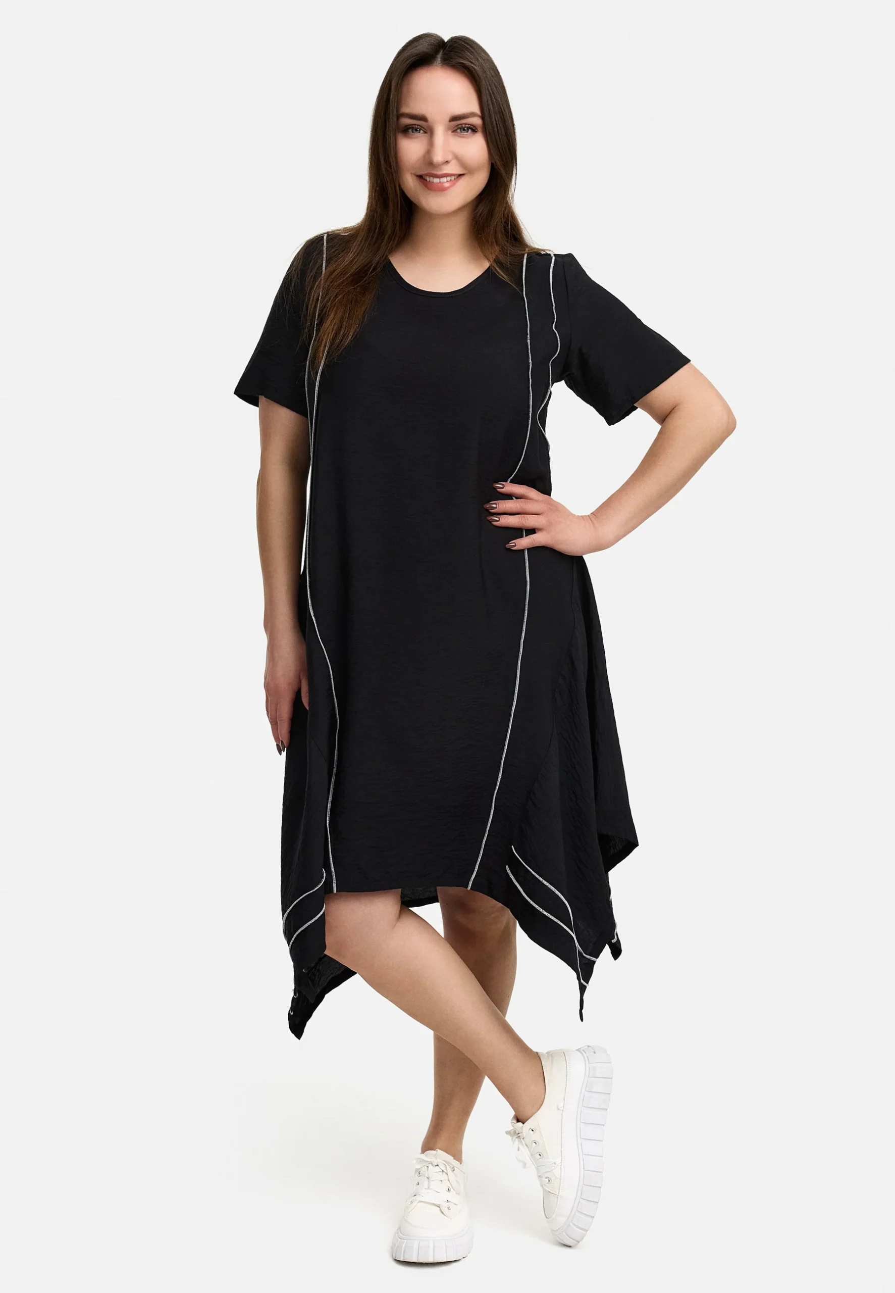 · Ligne A· Encolure ronde· Manches courtes· Coutures décoratives discrètes avec des accents de couleur contrastante· Ourlet avec pointes