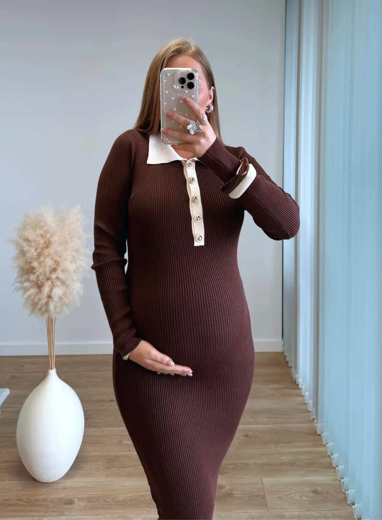 Robe longue côtelée chocolat de grossesse et allaitement ♡