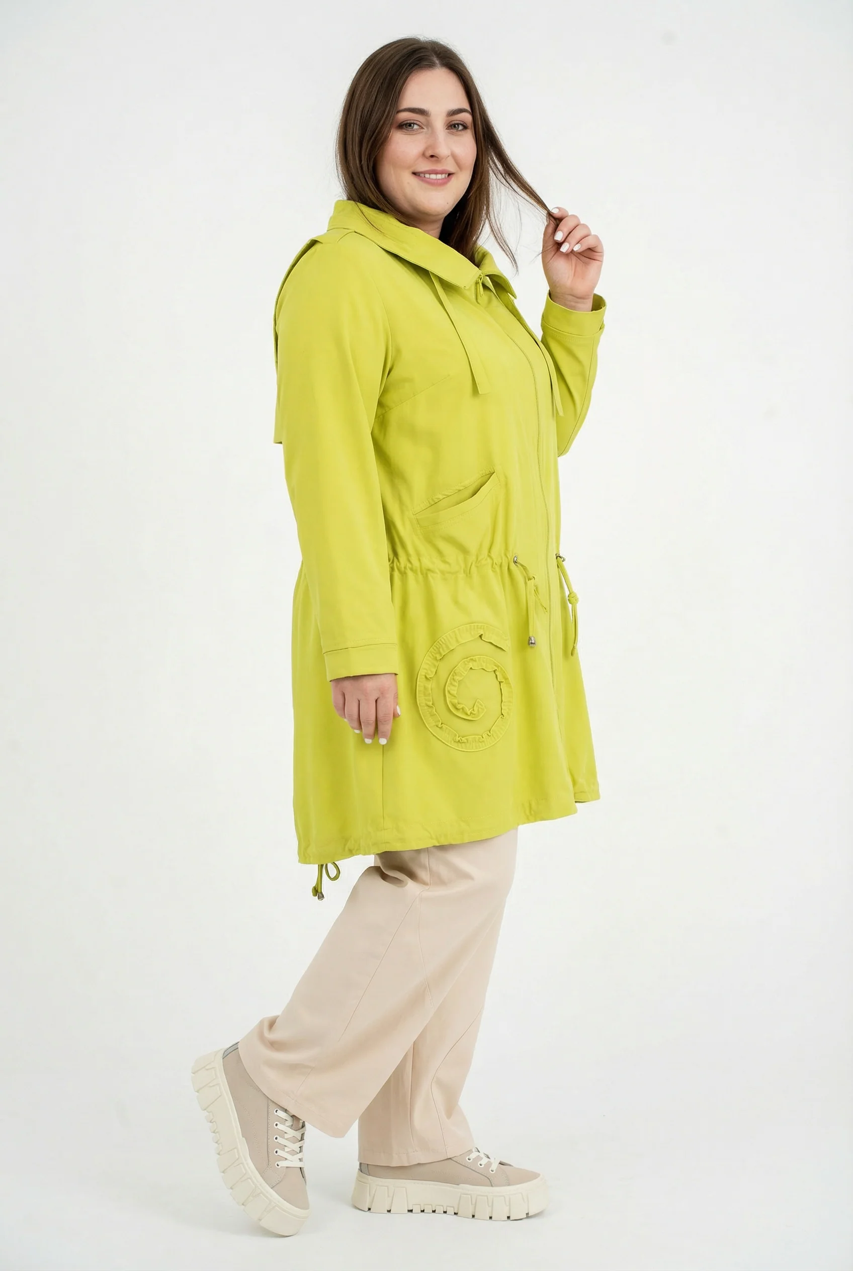 • Coupe : Légèrement évasée, taille ajustable avec cordon de serrage, longueur mi-cuisse• Détails : Col montant avec cordon de serrage, fermeture éclair intégrale (style à double sens), poches latérales• Design : Applications en spirale sur les poches et le dos, ourlet ajustable avec cordon• Couleurs : Noir, Beige et Vert citron