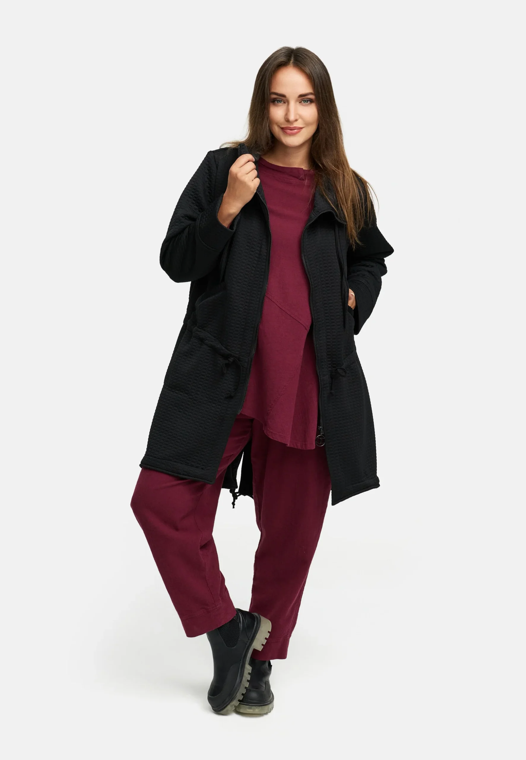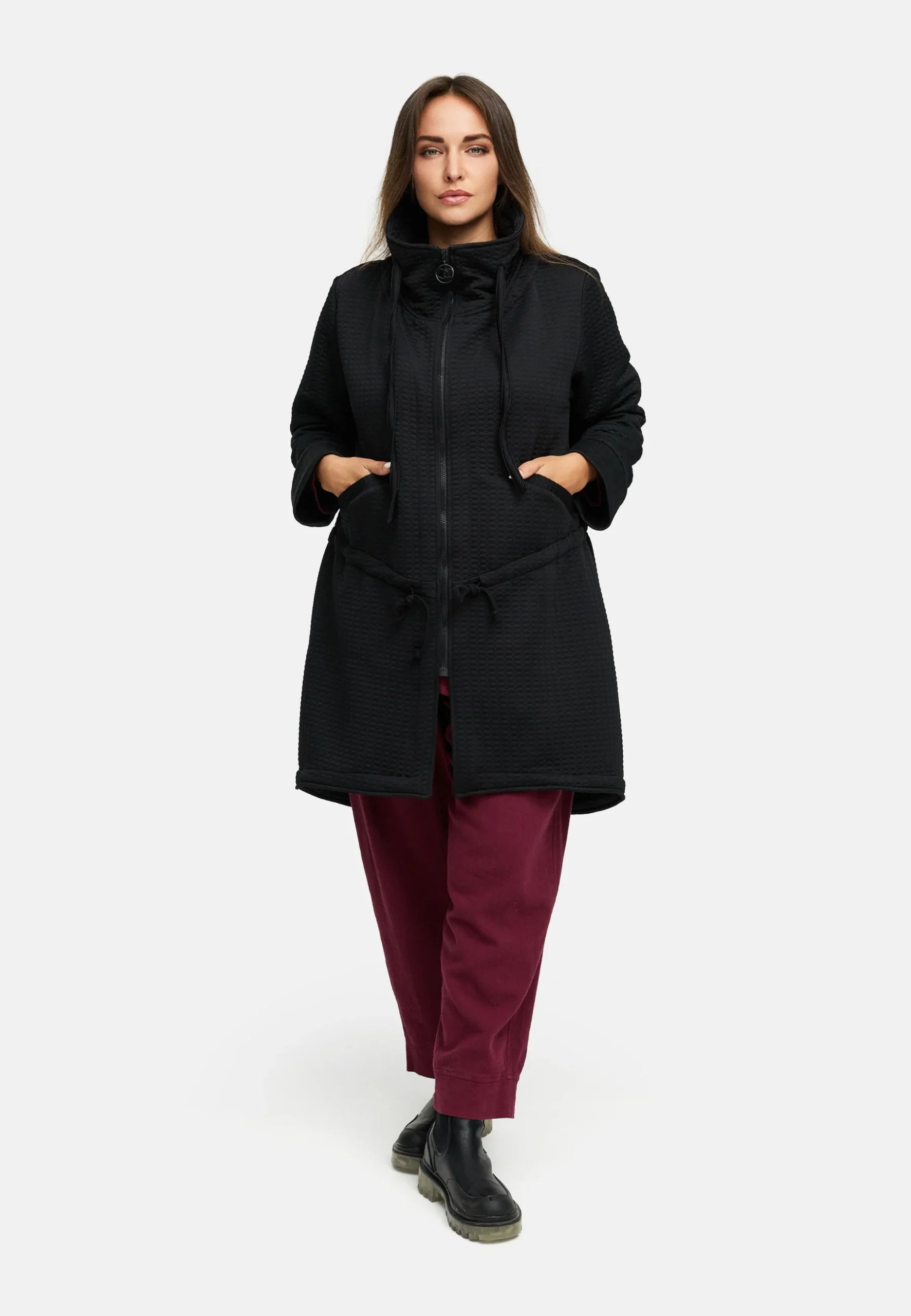 • Détails : Col haut avec cordon de serrage, fermeture éclair intégrale, poches latérales, ourlet arrondi avec fente à l’arrière.