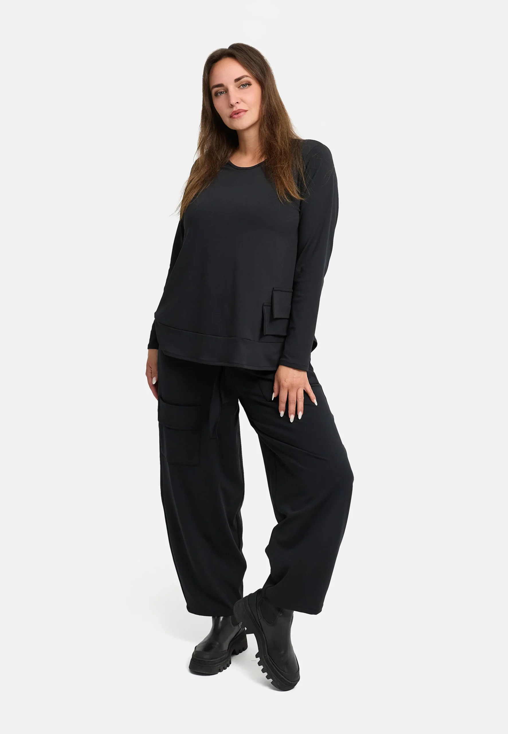 • Coupe : Coupe ample avec jambe droite et ceinture élastique• Détails : Poches plaquées, ceinture à nouer, ceinture élastique• Couleur : Noir profond – classique & polyvalent à combiner