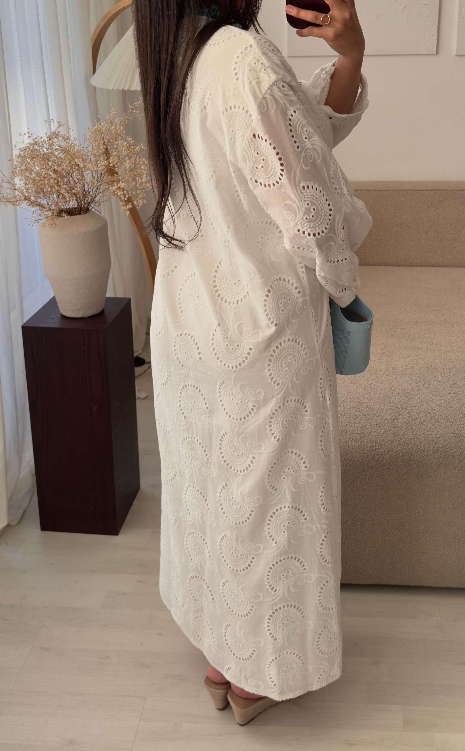 Robe en coton 100%, broderie anglaise, idéale pour le printemps/été. parfait pour une élégance discrète.