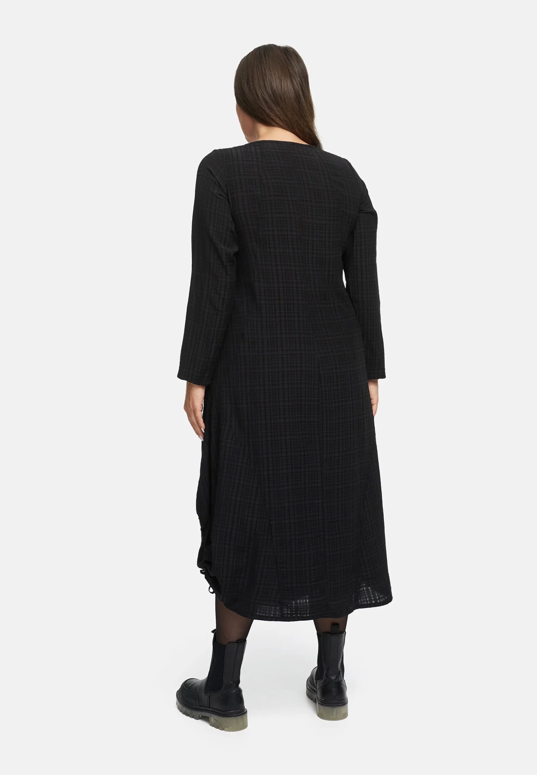 • Légèrement évasée ligne A• Encolure ronde simple avec bordure fine• Motif à carreaux discret en structure tissée• Parfait pour les premiers jours d’automne• Forme épaule tombante avec épaules douces et manches longues• Poches latérales discrètes intégrées• Cordon de serrage latéral à l’ourlet : crée à souhait des fronces douces et un effet ballon• Fines […]
