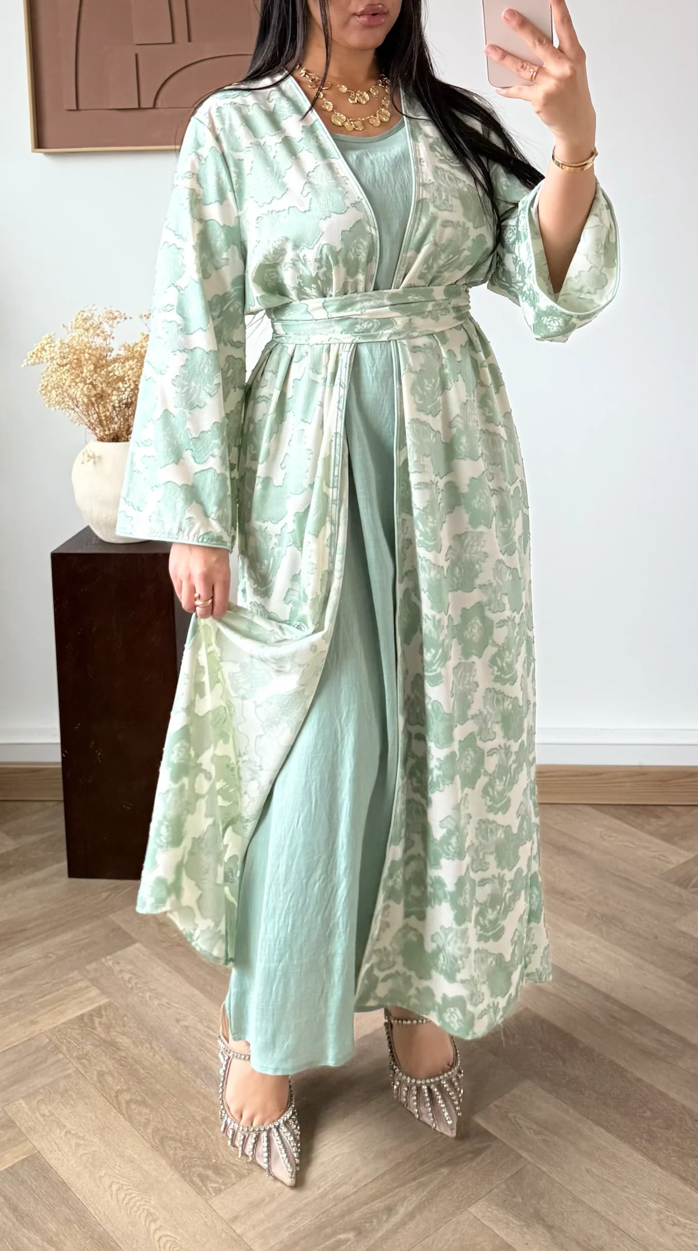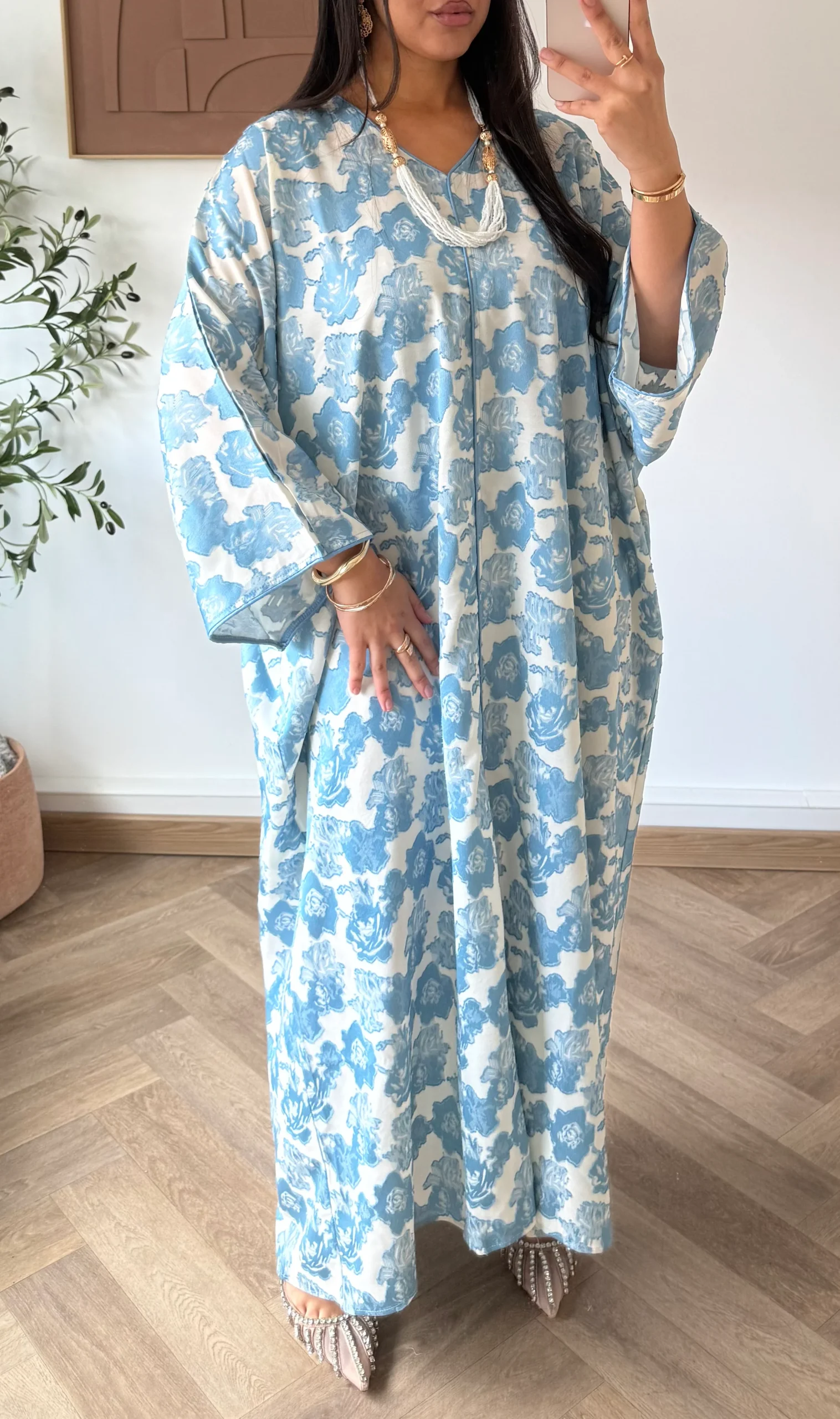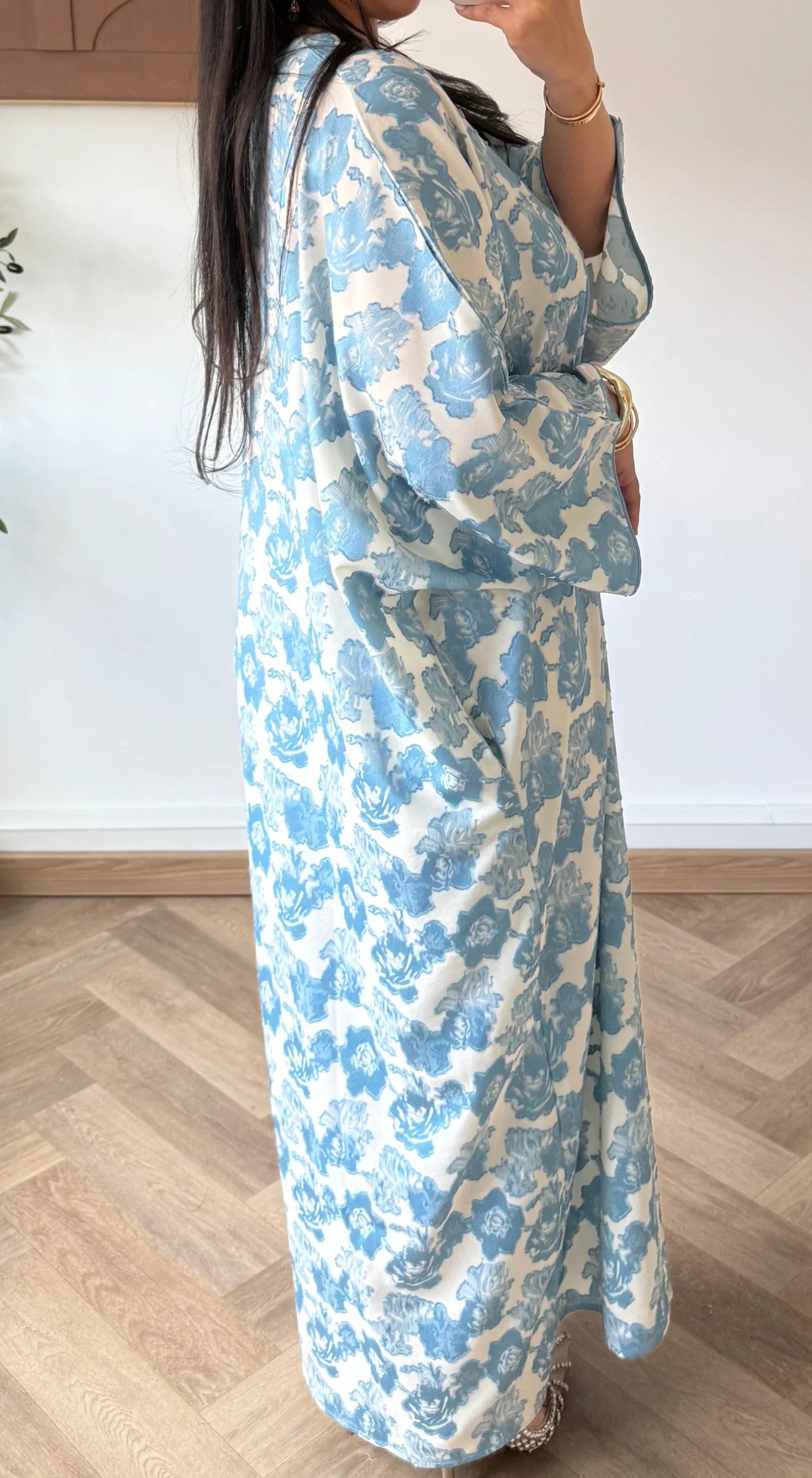 Robe V-col en viscose et polyester, broderie nuage coloré, idéale pour le printemps – été.
