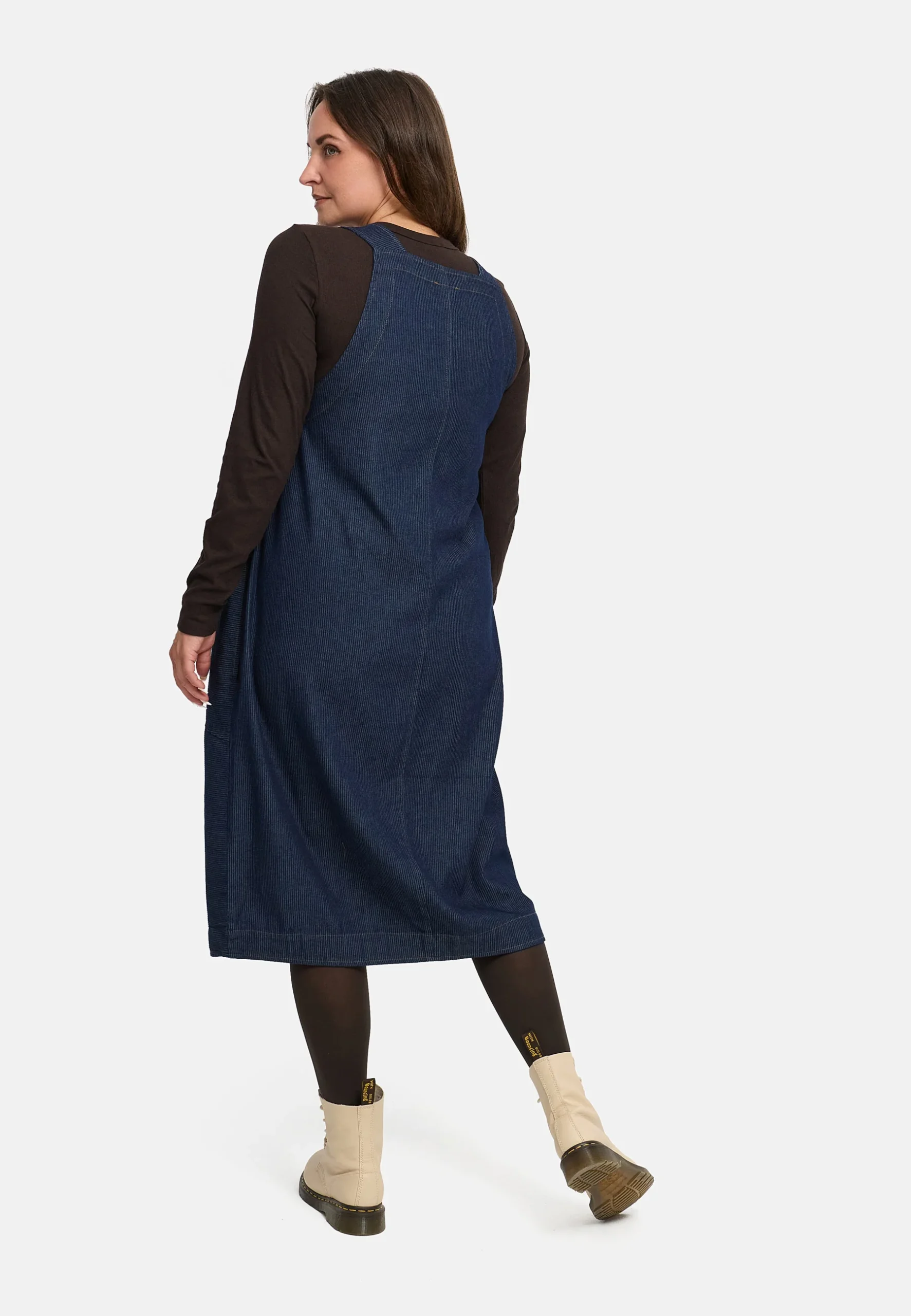 Robe salopette en denim bleu avec une fine structure ‘Bella’