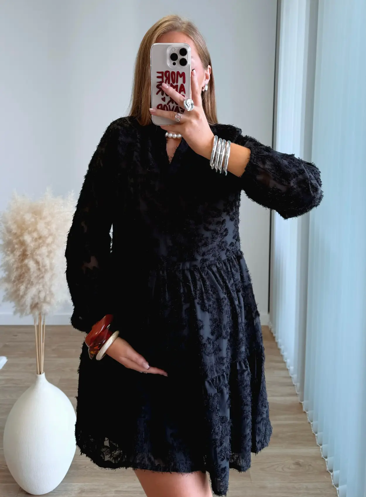 - La matière n’est pas transparente car une doublure est présente sous la robe !