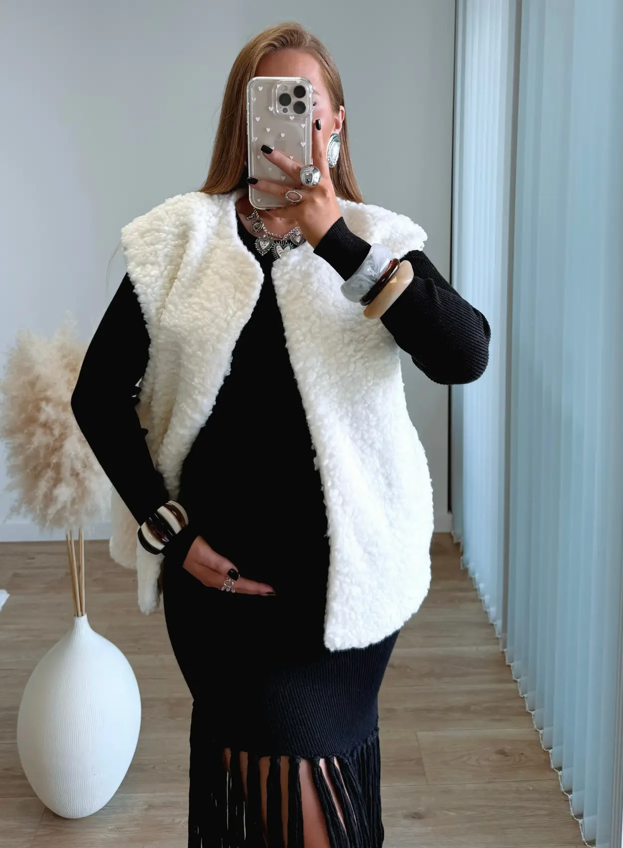 - Cette robe s’adapte super bien avec la veste sans manches AVA : deux indispensables à avoir dans votre dressing de future maman <3
