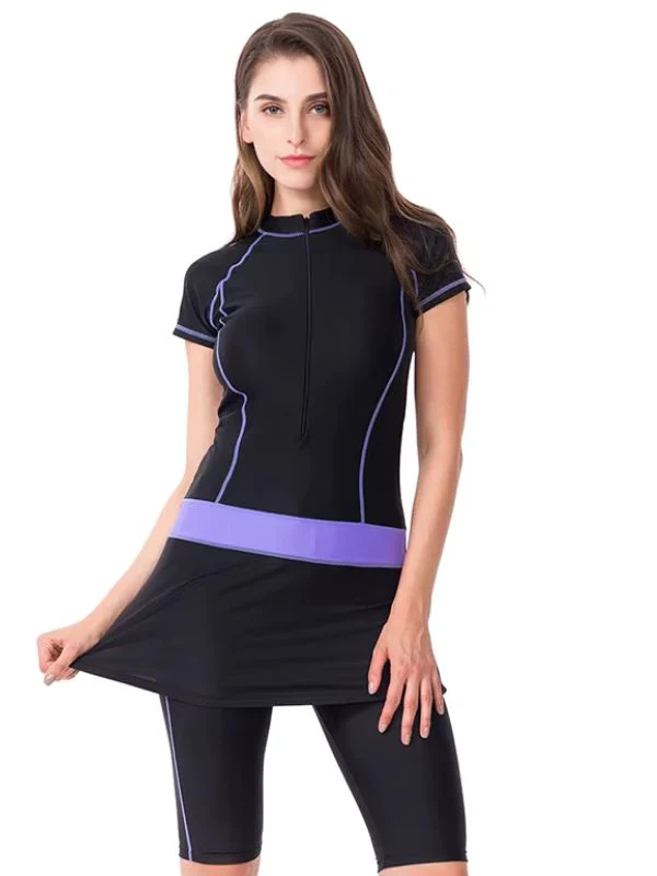 Burkini manche courte stripe noir