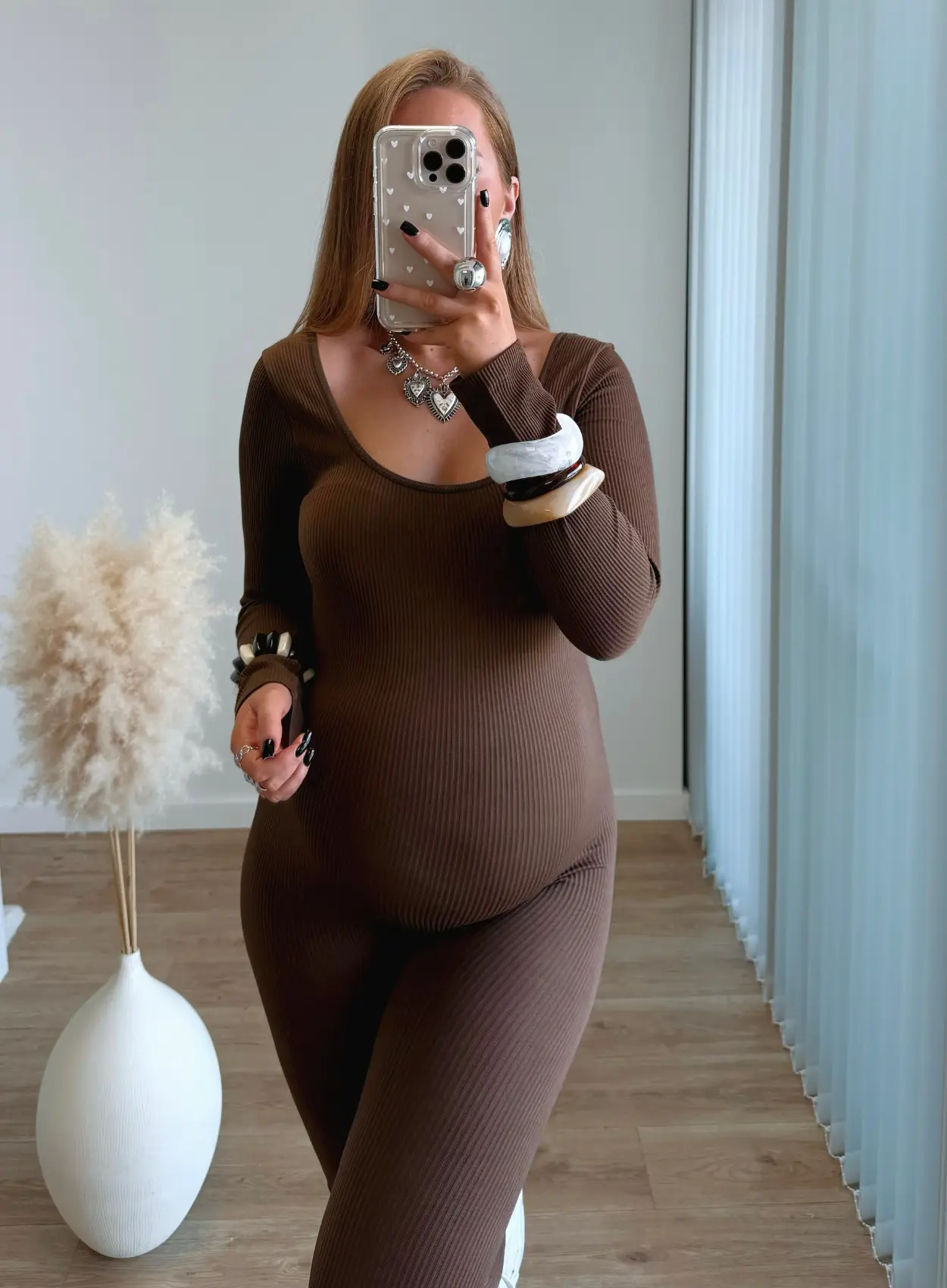 NALA CHOCOLAT – Combinaison de grossesse côtelée